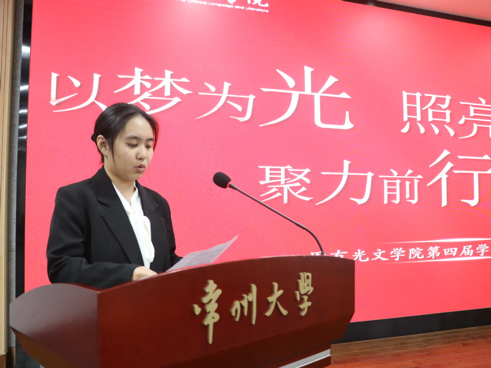 李衬向大会作报告,她分别从组织建设、文化风采、创新创业和志愿服务四个方面向大家系统汇报过去一年学院团学工作情况,全面展现了团学工作的扎实成效和蓬勃气象。