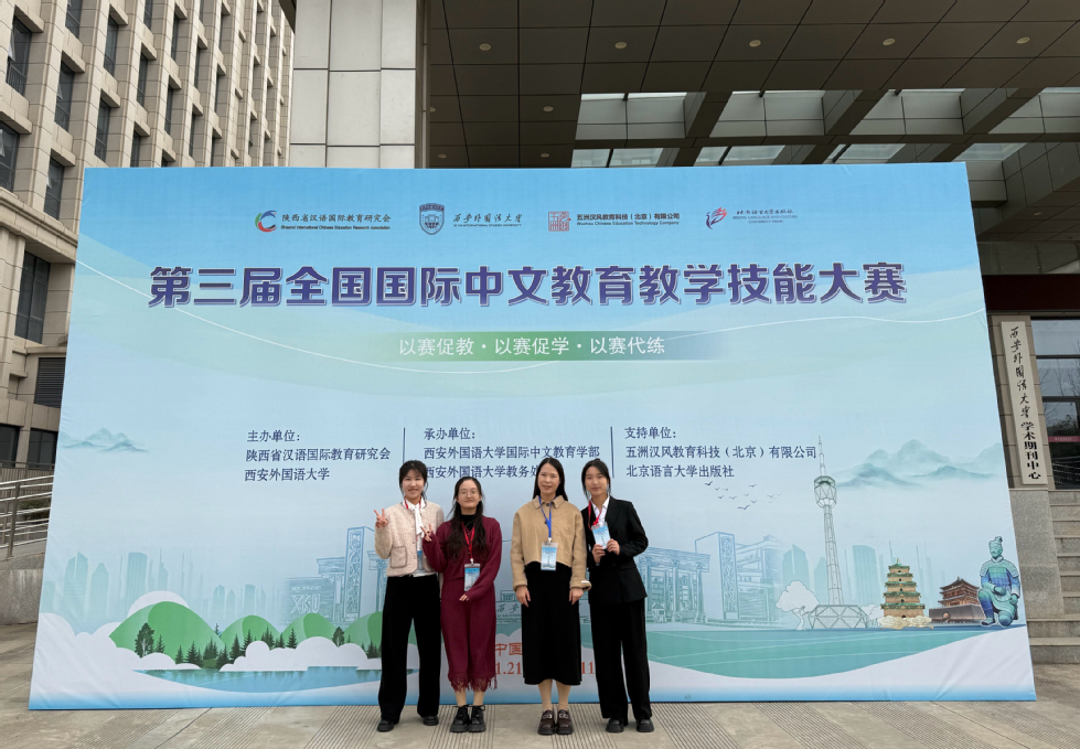 2025年11月22日至23日,第三届全国国际中文教育教学技能大赛在西安外国语大学长安校区举行。missav 选派2025级国际中文教育专业研究生林欣慧、张欣怡、祁成璐参赛。三位同学凭借扎实的专业基础和出色的教学表现,与来自全国多所高校的优秀选手同台竞技,最终均荣获研究生组优秀奖。这也是missav 研究生首次参与此类全国性赛事。现场比赛由辅导员张燕红老师带队参加。