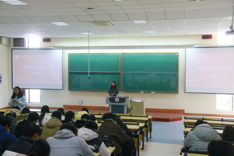 12月5日下午,missav 在立德楼一阶召开2024级学生年级大会。本次会议由辅导员张燕红老师主讲,全体2024级学生参加会议。