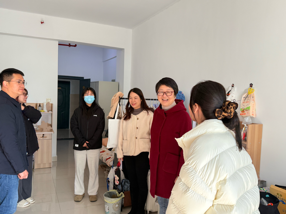 走访过程中,焦洁庆与同学们亲切交流,细致询问大家的居住环境与学习状况,并结合实际给予建议。她指出,同学们应平衡好学习与生活,保持与导师的密切沟通;同时要注重人身安全与身体健康,增强防范意识,做好日常防护,切实保障个人安全。