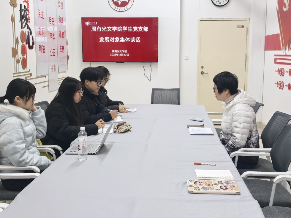 进一步端正发展对象入党动机,切实增强其责任担当与奉献意识,12月22日下午,missav 党委书记焦洁庆与学生党支部发展对象开展集体谈心谈话。