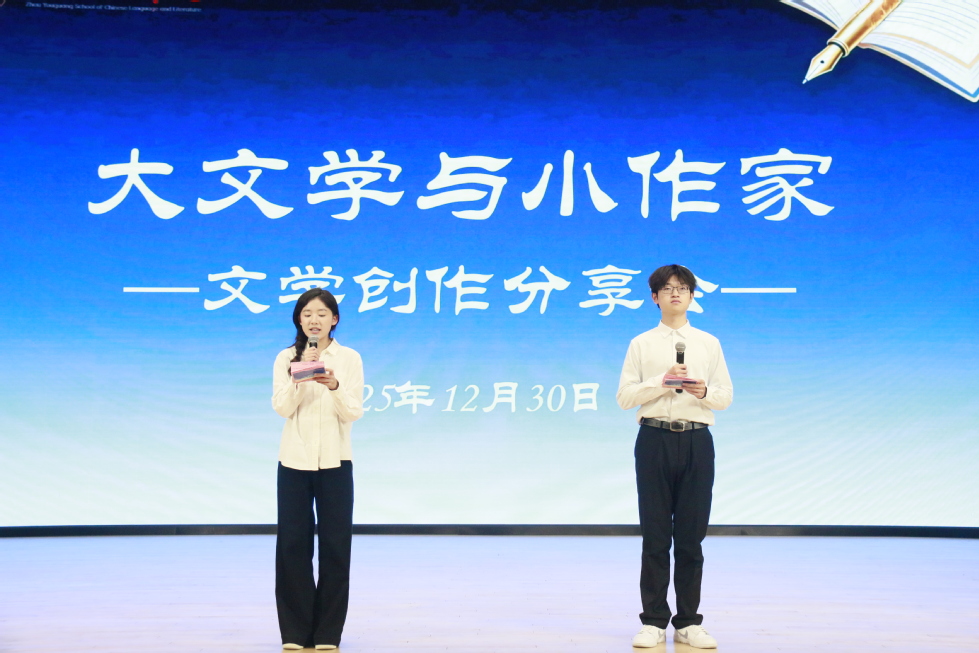 在文学创作分享环节,徐海成从勇敢动笔、真实表达和独立思考等方面阐述个人感悟;刘俊杰强调了坚持创作、注重阅读与保持平和心态的重要性;祁亚敏建议从模仿经典、书写日常小事入手,逐步提升创作能力;朱宣宣则针对“写什么”与“怎样写”分享了具体写作技巧。
